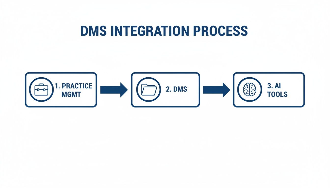 The whole point is to create a single source of truth that the entire practice can rely on. By linking your DMS to other core platforms, you guarantee that every piece of data—from a client's contact information to a specific billing code—is consistent everywhere. This turns your document repository from a passive storage unit into an active, strategic tool that actually helps you run the firm better.
