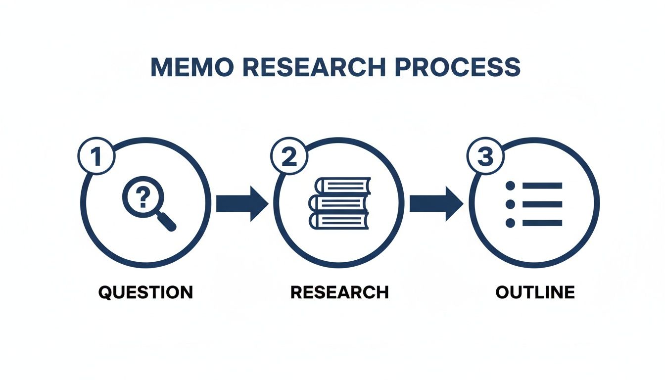 A strong memo is built on a solid foundation. You start with the core question, do the deep-dive research, and then map out your argument with an outline.