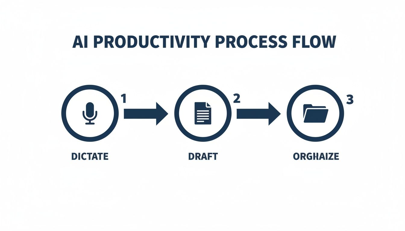 This is where you can see the power of modern tools in action. The process flow below shows how AI-driven features can simplify core tasks like dictating, drafting, and organizing documents.