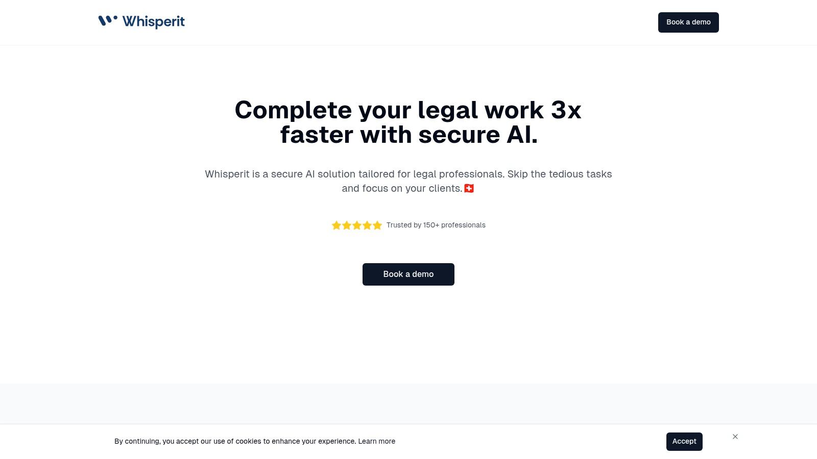 Ready to transform your document creation and management workflow? Whisperit is an advanced AI dictation and text editing platform designed for professionals in legal, healthcare, and other industries requiring secure document handling. This powerful tool helps create documents up to twice as fast as conventional methods, giving you back valuable time to focus on other aspects of your practice. With secure Swiss hosting, GDPR and SOC 2 compliance, and flexible integration options, Whisperit protects your sensitive data while boosting productivity. Experience more efficient document management—learn more and request a demo at Whisperit.