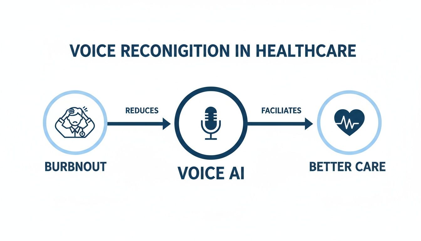 Picture this: a doctor's office where the physician is focused on the patient, not the computer screen. This isn’t some far-off fantasy—it’s what’s happening right now, thanks to voice recognition for healthcare. This technology acts like a skilled medical scribe, listening, understanding, and documenting everything with remarkable precision, giving doctors a real weapon against burnout.